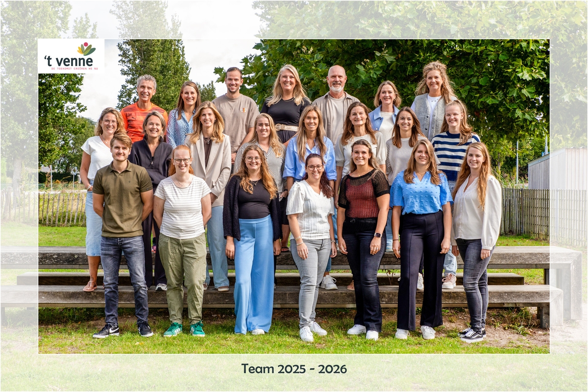 There are around 20 members of the ‘t Venne team. The majority of the team are group teachers, so they have their own classes. There are also a number ofteachers with expertise in specific subjects or who have a special function withinthe school.